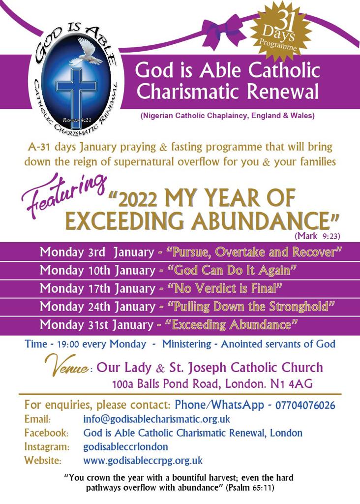 Join us in our 31 days January praying programme and experience the divine move of God in your life.